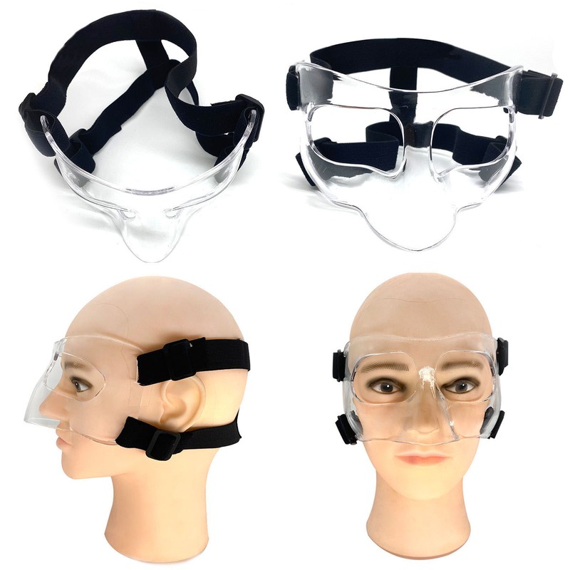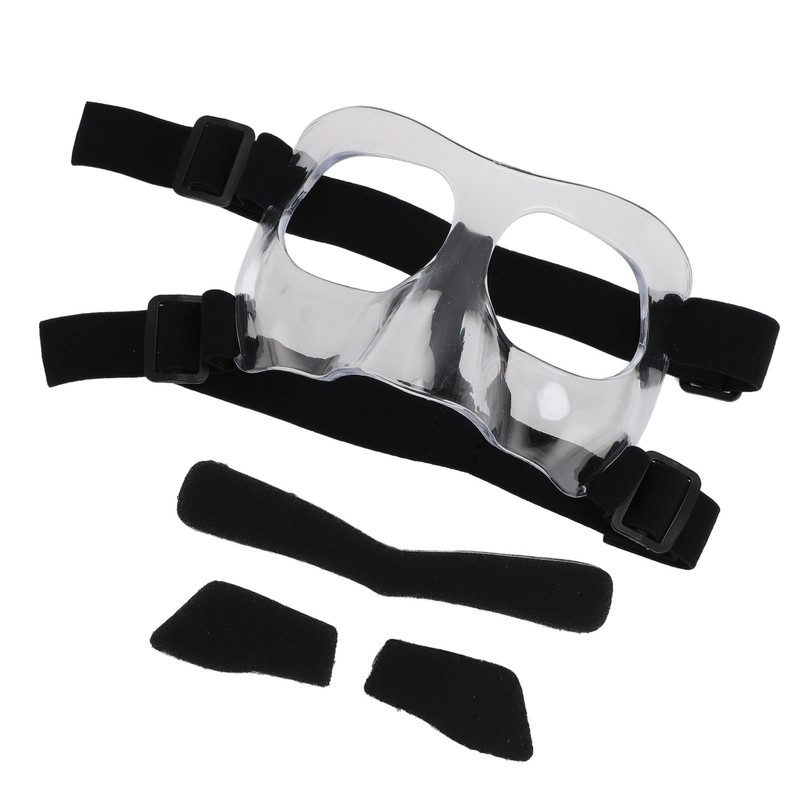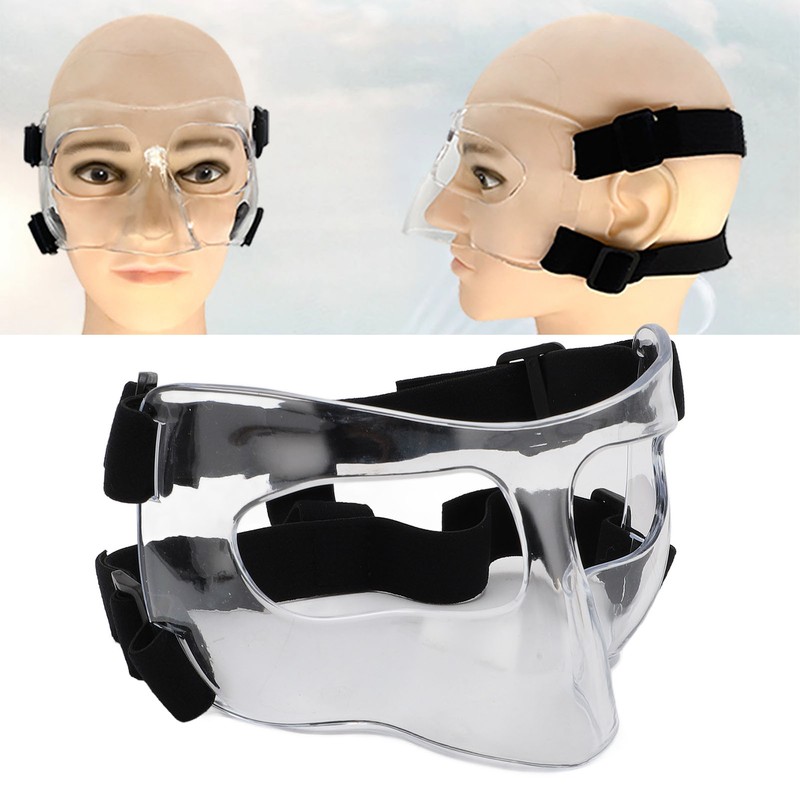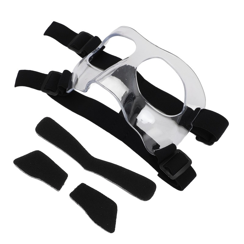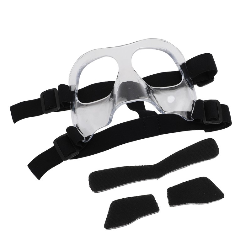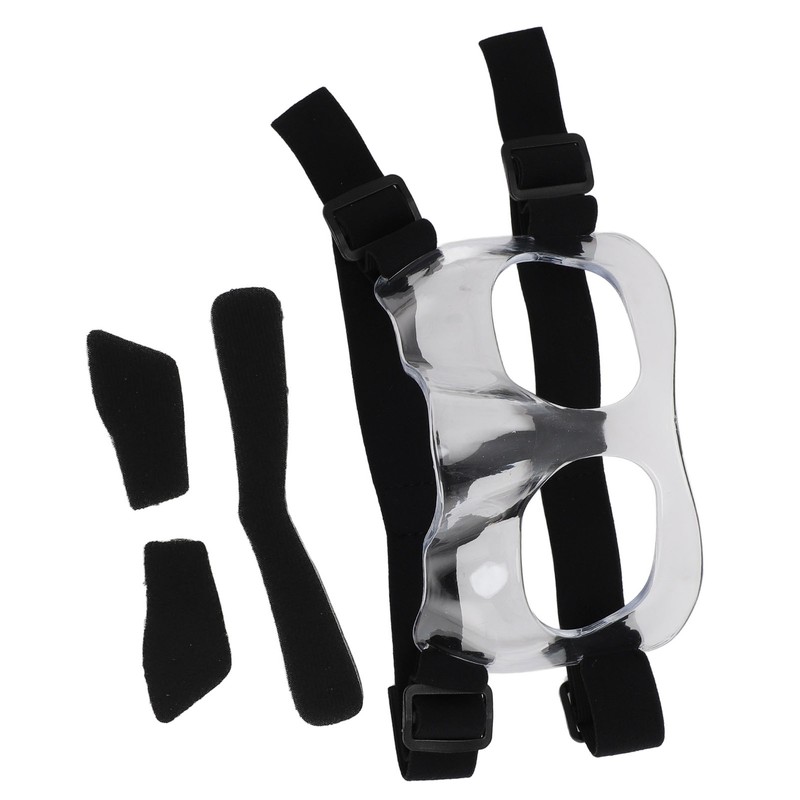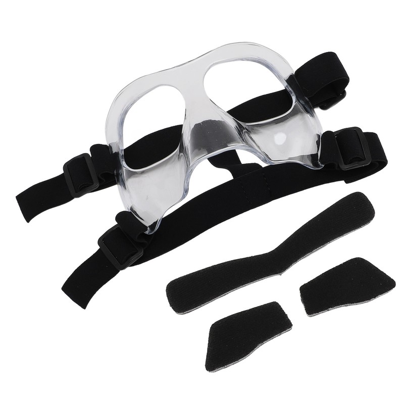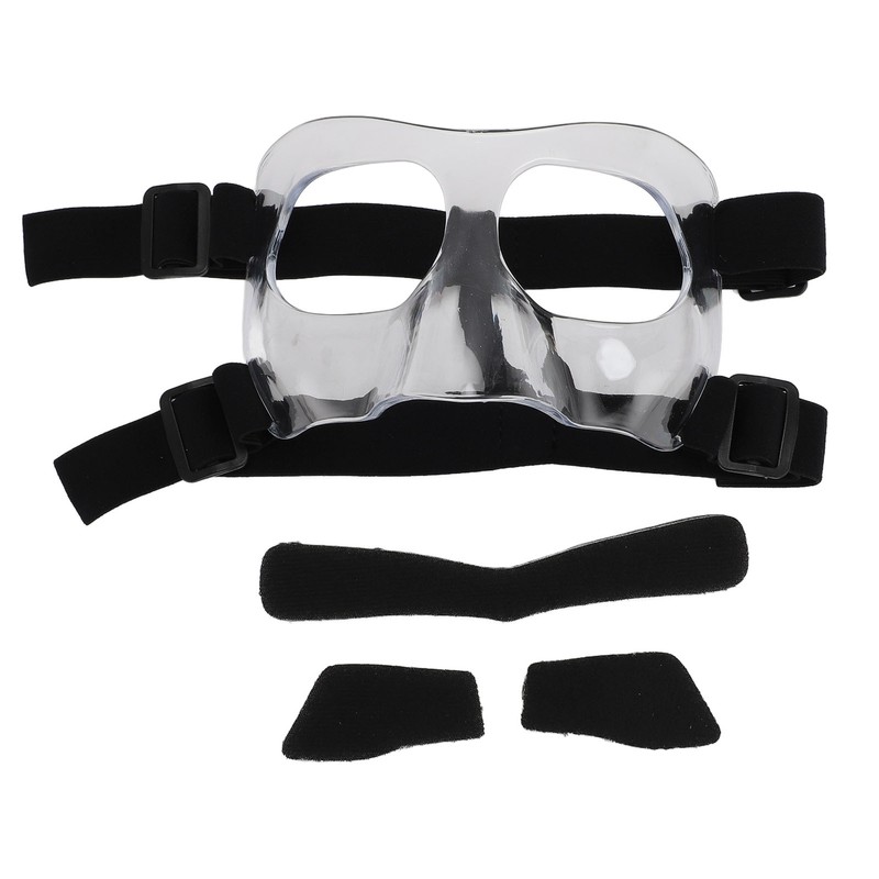 Sports Face Guard Adjustable Transparent Full Frame Nose Guard for Basketball Soccer Sports with 3pcs Foam Padding