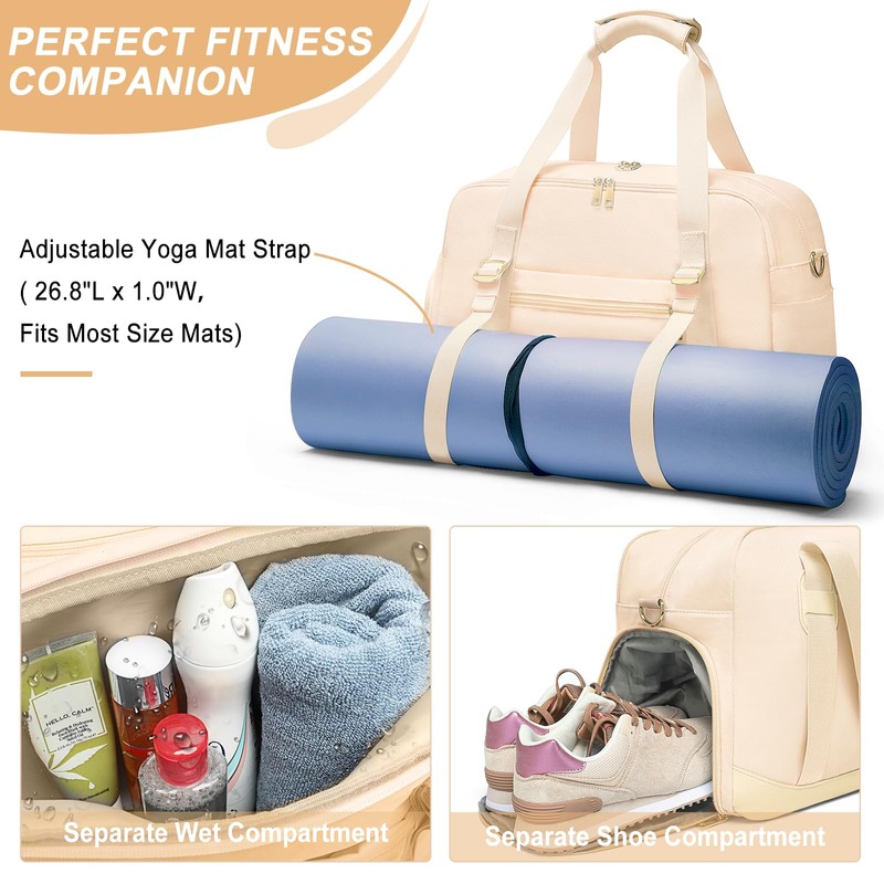Sports Gym Bag for Women, Sport Duffle Bag with Toiletry Bag, Small Womens Gym Bags Workout Bag with Shoe Compartment & Wet Pocket