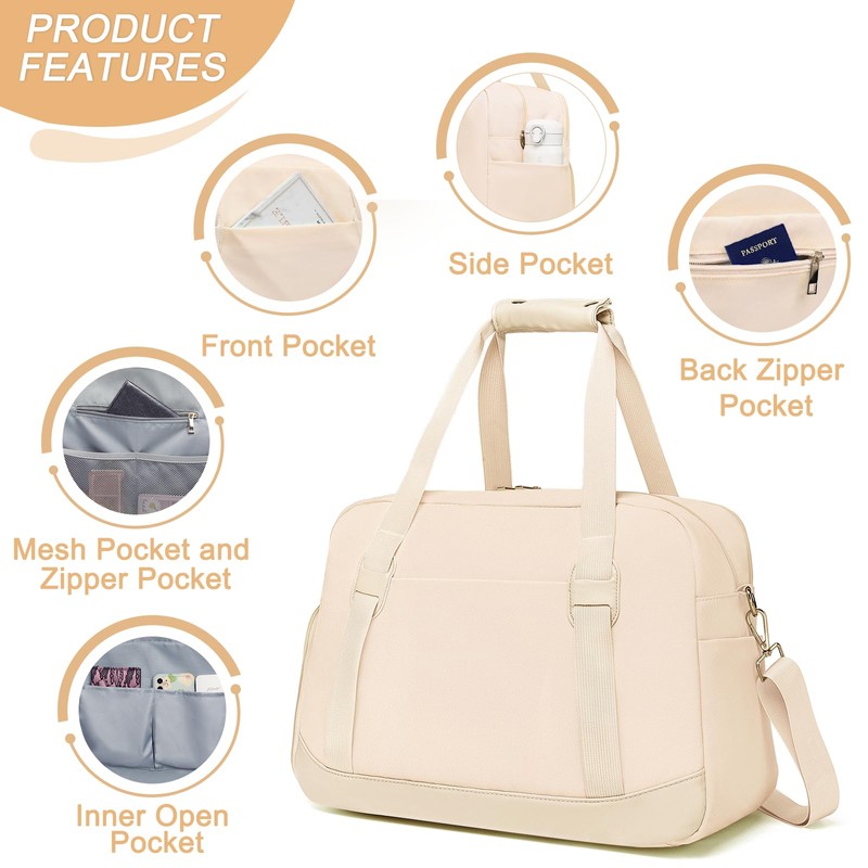 - The space is enough for clothes, shoes, toiletries, swimsuits, and other items. There are many functional pockets so we can easily separate cellphones, keys, wallets, and other valuable small items, perfect for 2- 3 days weekend or business trips, beach or daily use.