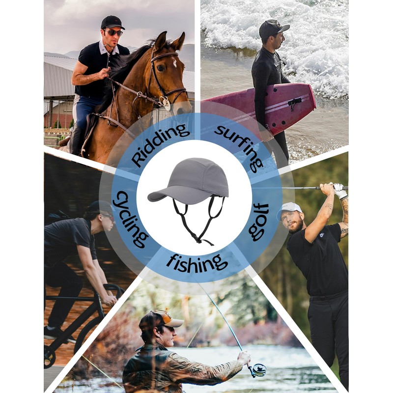 Sports Hat for Men & Women Quick-Dry Cycling Cap with Adjustable Windproof Chin Strap Running Surf Baseball Sun Hat Gray