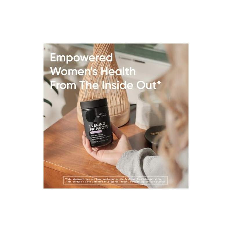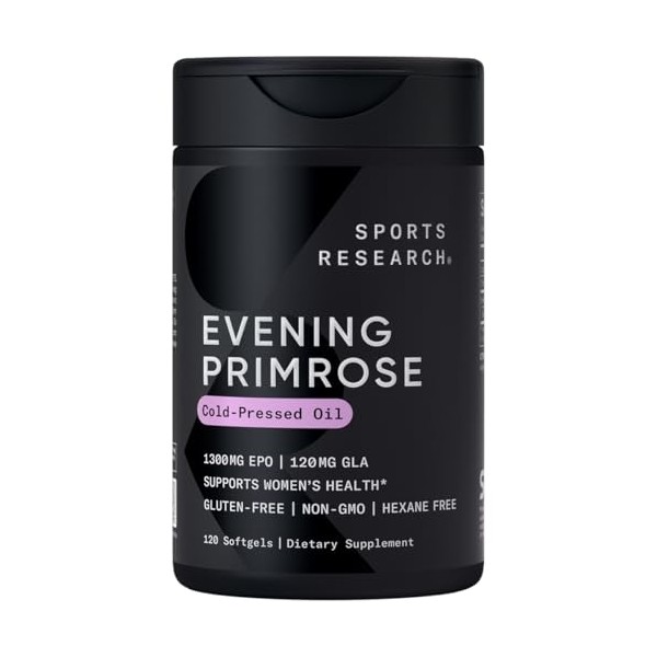 Sports Research Evening Primrose Oil (1300mg) Cold-Pressed with No fillers or Artificial Ingredients, Non-GMO Tested - Gluten and Soy Free (120 Liquid Softgels)
