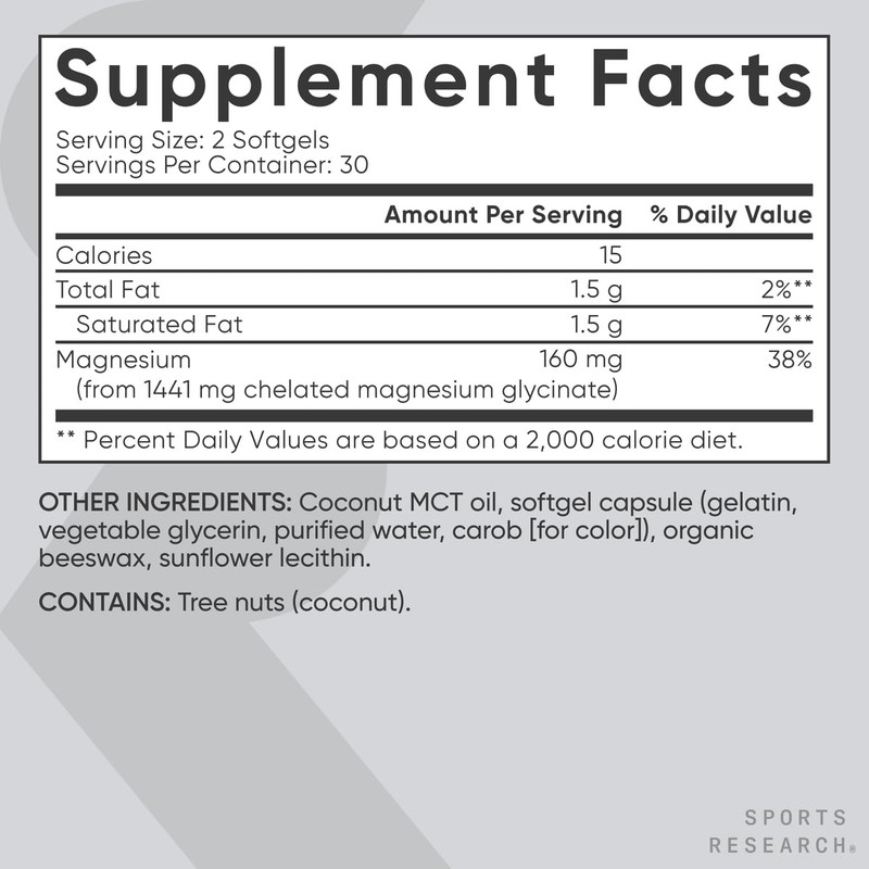 Sports Research® Magnesium Glycinate - Supports Restful Sleep & Enzymatic Processes - 160 mg Chelated Magnesium - Liquid Softgel - 60 Count
