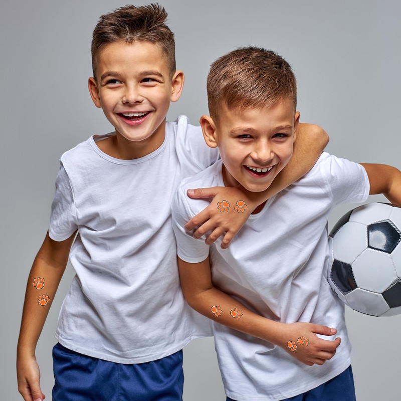 Sports Spirit Temporary Tattoos / 100 Mini Team & School Spirit Designs/Skin Safe/Removable (Orange Puffy Paw)