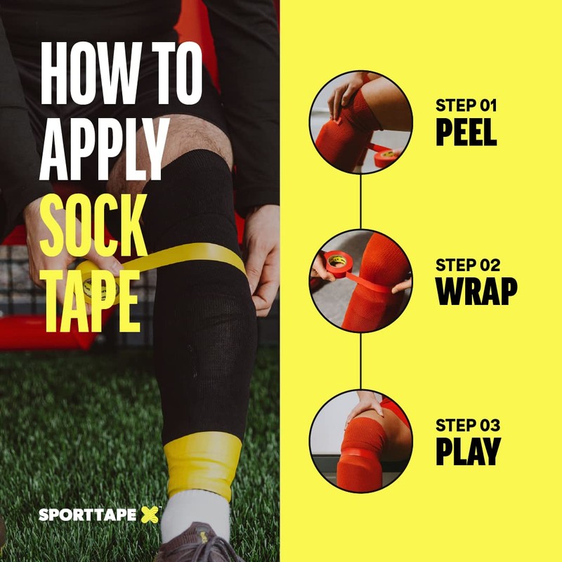 - 8 Colours - SPORTTAPE Football Sock Tape is available in Red, White, Black, Blue, Yellow, Green, Orange and Purple, so matter the colour of your football kit, we've got a tape to match.