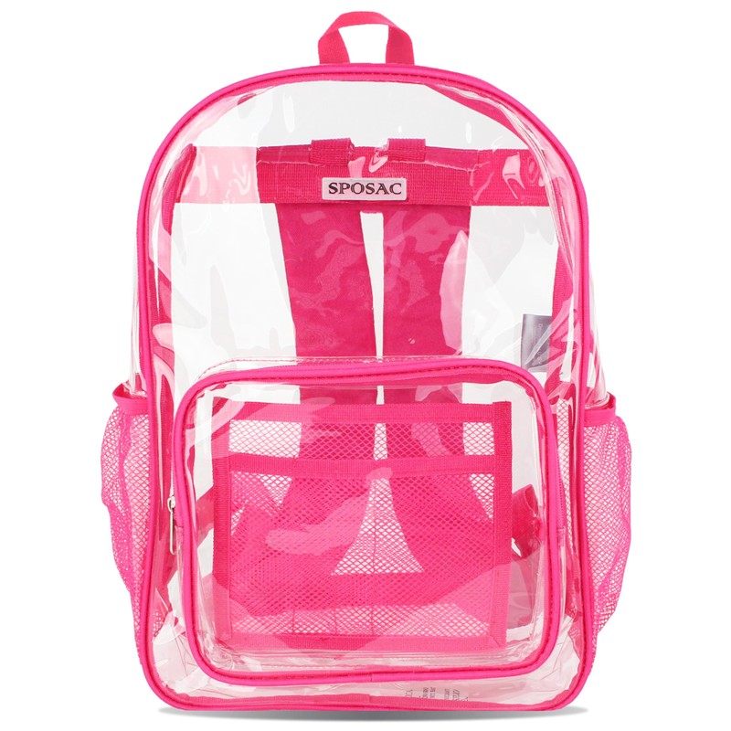 Sposac Medium Clear Backpack for Women and Kids. See Thru Plastic PVC Bookbag, Pink, One Size