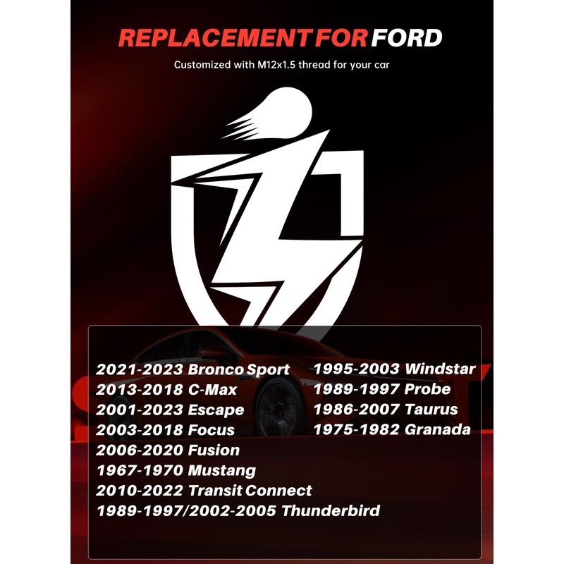 [APPLICABLE VEHICLE]: Aftermarket wheel lug nuts replacement for 2001-2023 Ford Escape. 2003-2018 Focus. 2006-2020 Fusion. More detailed compatible models are available in the image content, please confirm your model and year before placing an order.(Note:Do NOT Fit Mag/Flat Seat Stock Stock Wheel, Cone Wheel Only)