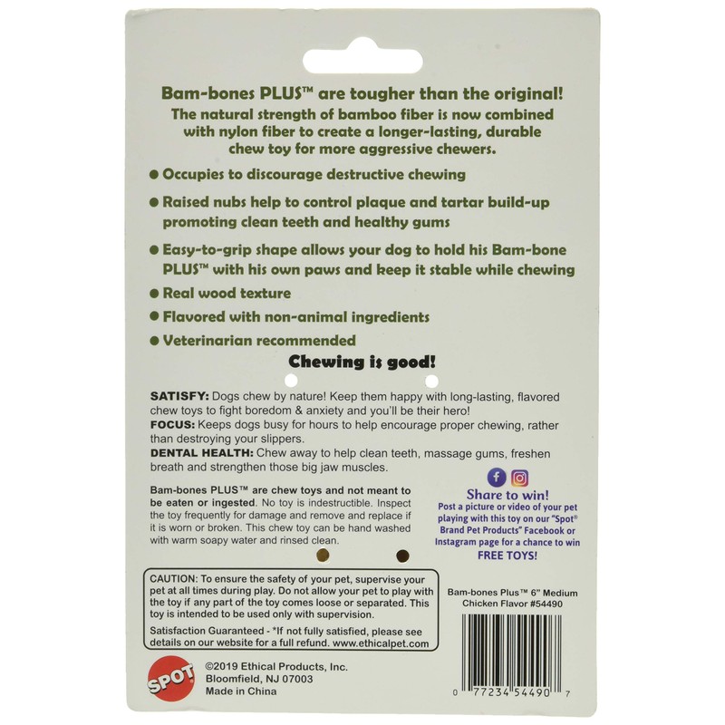 SPOT by Ethical Products- Bambone Plus – Easy Grip Durable Dog Chew Toy for Aggressive Chewers – Great Dog Chew Toy for Puppies and Dogs Dog Toy - Chicken - Medium