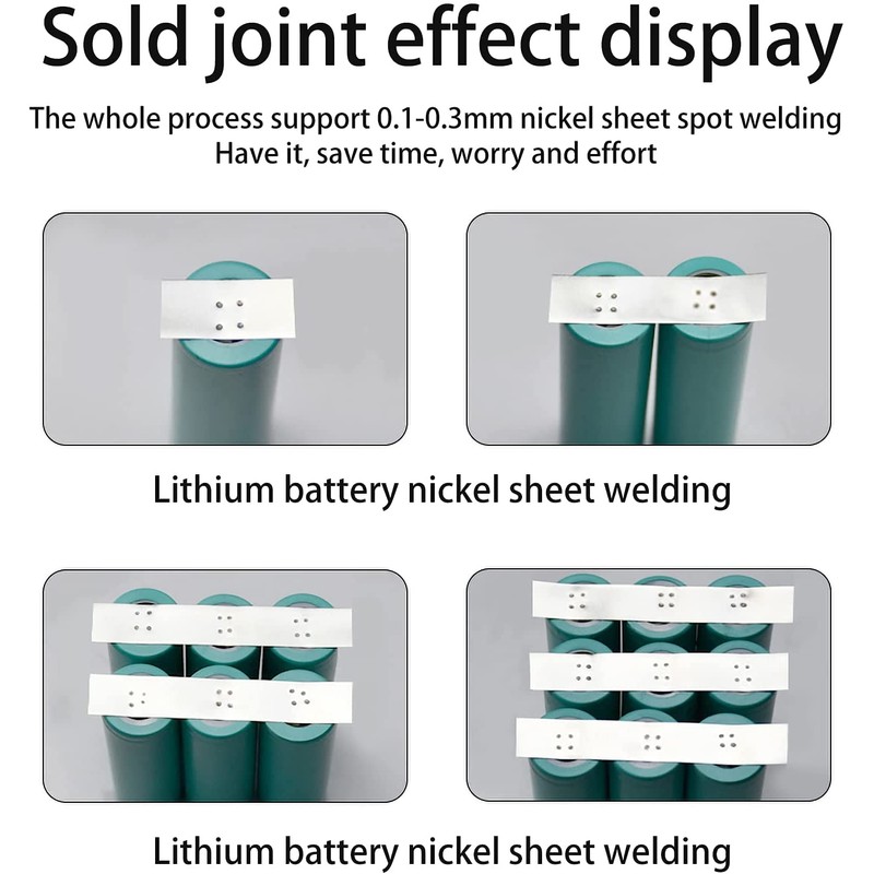 - ✔Wide Range of Applications - 18650/26650/32650 and other cylindrical lithium batteries, nickel-hydrogen batteries, nickel-cadmium batteries, etc. can be welded firmly.