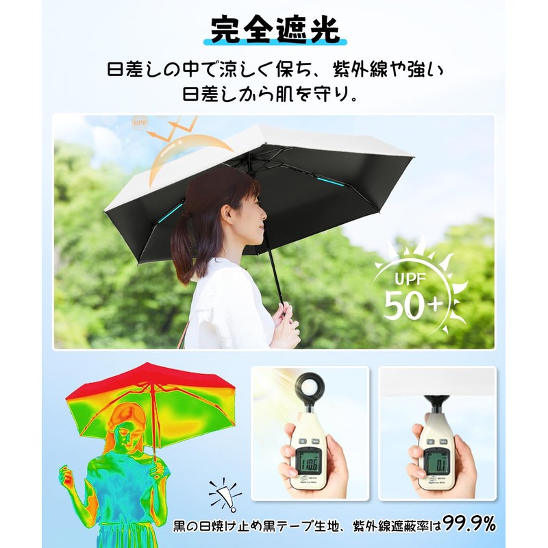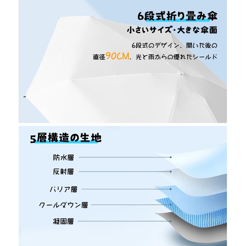 • UV Protection and Folding Umbrella: High quality parasol, foldable, high-density fabric and sunscreen black tape, UPF 50+, UV shielding rate is 99.9%, and the diameter is 35.4 inches (90 cm) when opened, it has excellent sun and heat shielding effect. It keeps you cool in the sun, protects your skin from UV rays and strong sunlight, and is great for commuting to work in hot weather