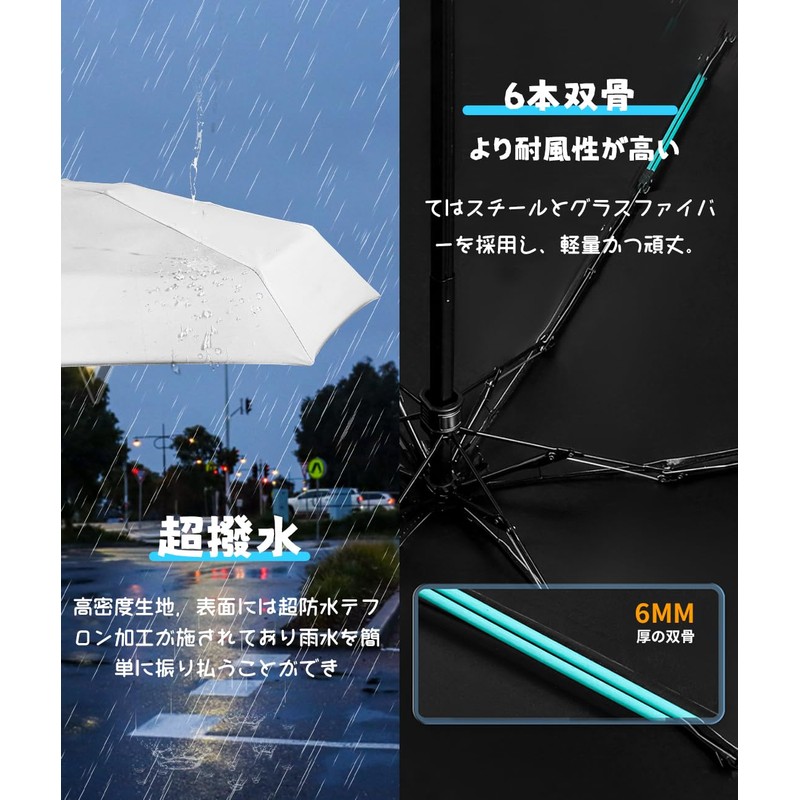 • Durable 6-rib design: The folding parasol holder is made of steel and glass fiber, making it super strong and toughness. The 6-rib design improves wind resistance and durability of the parasol, and its durable and flexible construction means you won't have to worry about it breaking or falling apart in heavy rain or strong winds. They are durable and will recover even when turned inside out in strong winds. You can use it with confidence