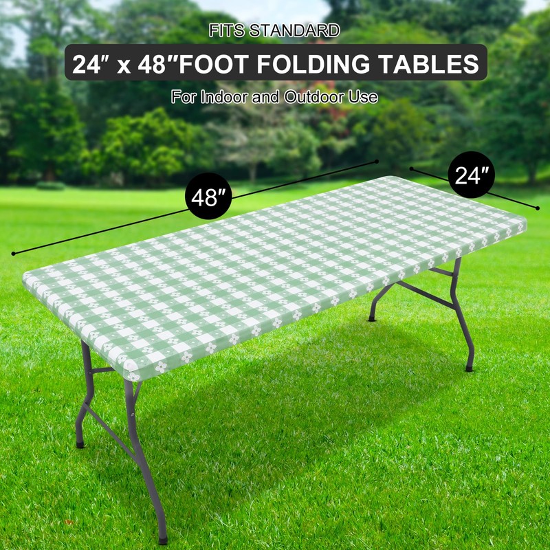 Spotjoy Rectangle Picnic Table Cloth, Waterproof Elastic Fitted Outdoor Table Covers, Flannel Backed Plastic Vinyl Tablecloths for Indoor and Outdoor (24"x48", White & Sage Green)