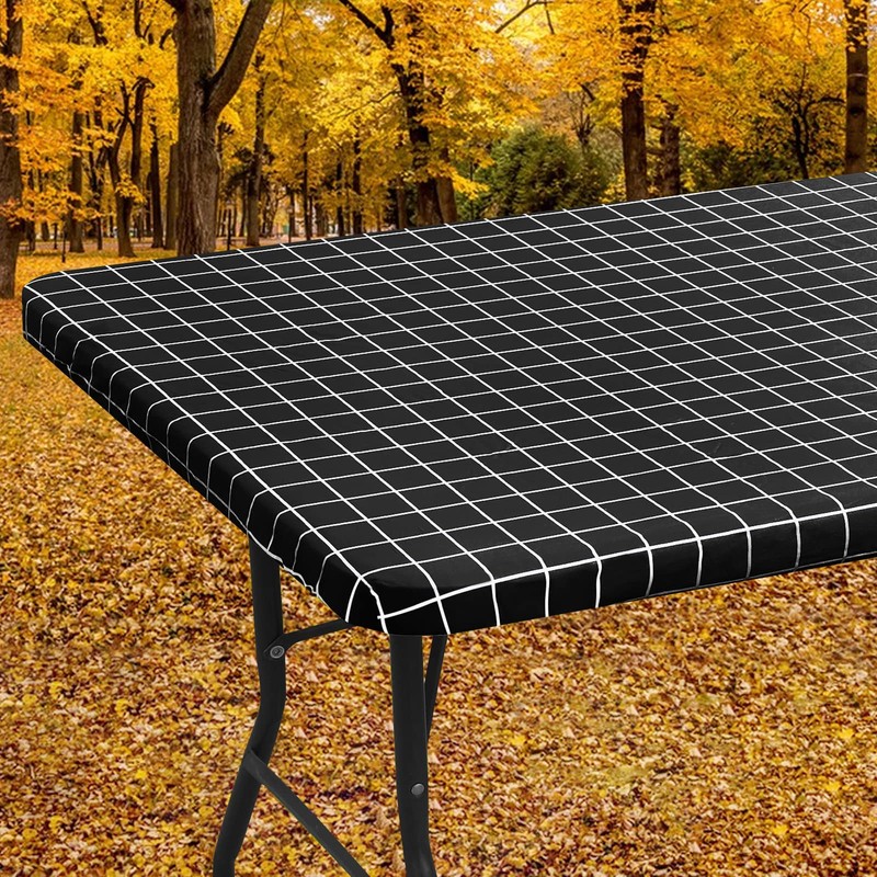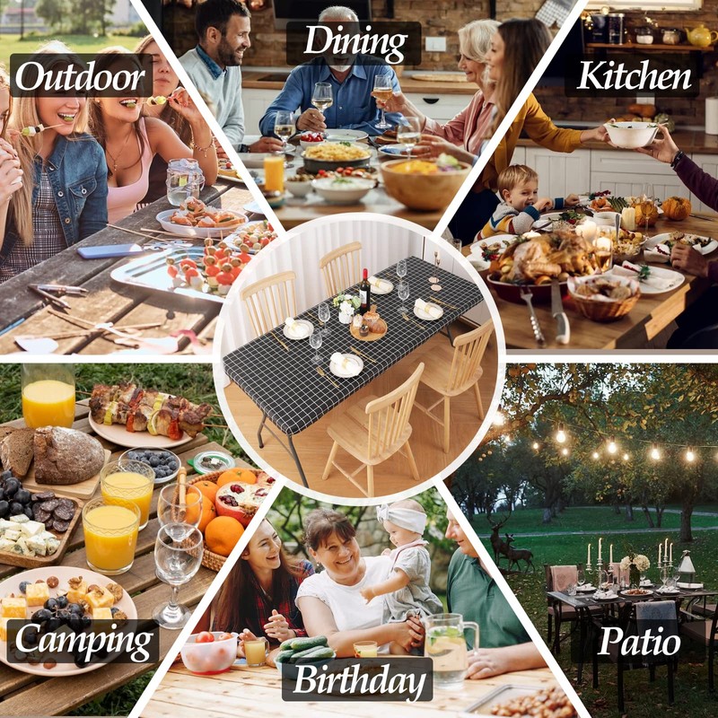 - [Elastic Fit & Non-Slip] The table cloth with elastic edge design allows the cover to fit perfectly on the rectangle folding table. The fitted tablecloth will not move, whether it is accidentally pulled or a gust of wind blows in to interfere with your pleasant dinner