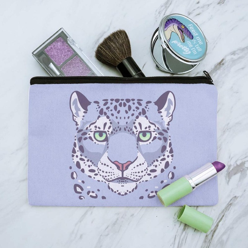 Spotted Snow Leopard Face Makeup Cosmetic Bag Organizer Pouch