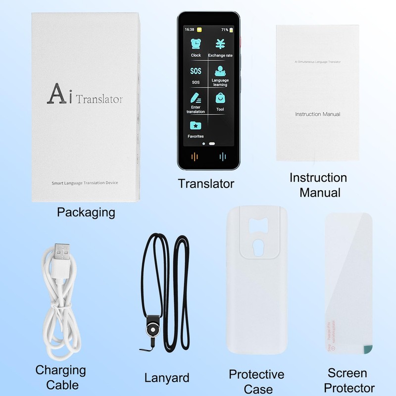 - 【Einfach zu bedienen】: Dieser intelligente Sprachübersetzer ist klein und leicht (12,4 x 4,8 x 1,2 cm, 0,1 kg) und verfügt über einen 10,2 cm großen hochauflösenden IPS-Touchscreen. Alle Funktionen lassen sich über den Bildschirm bedienen. Die Benutzeroberfläche ist einfach und intuitiv gestaltet und für jeden geeignet.