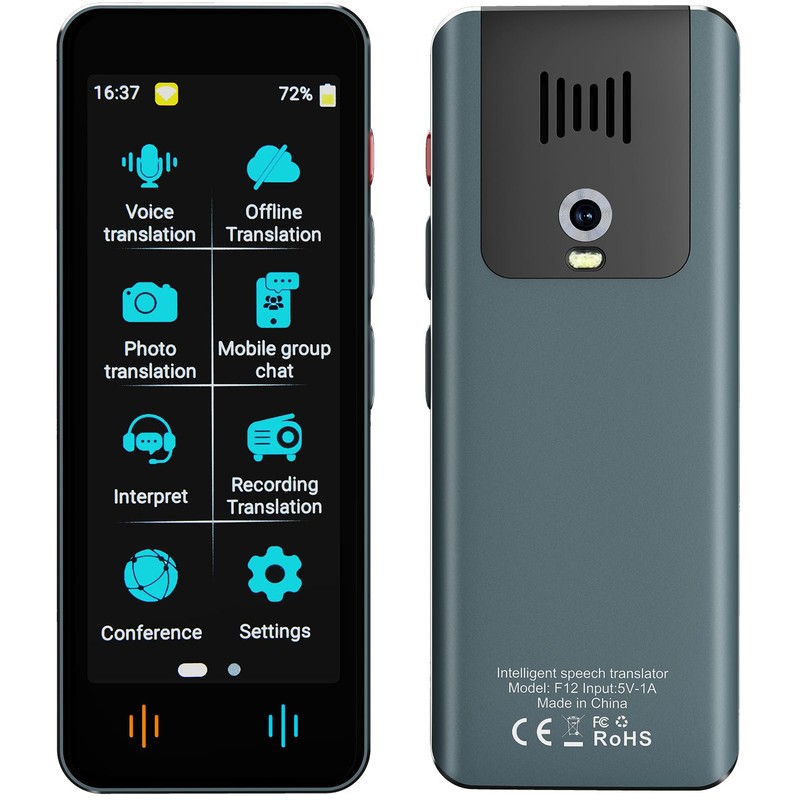 Sprachübersetzungsgerät, intelligenter AI-Übersetzer für 142 Sprachen, Offline-Übersetzung und sofortige bidirektionale Übersetzung, Reise-Geschäftsgeschenke lernen (gungrau)
