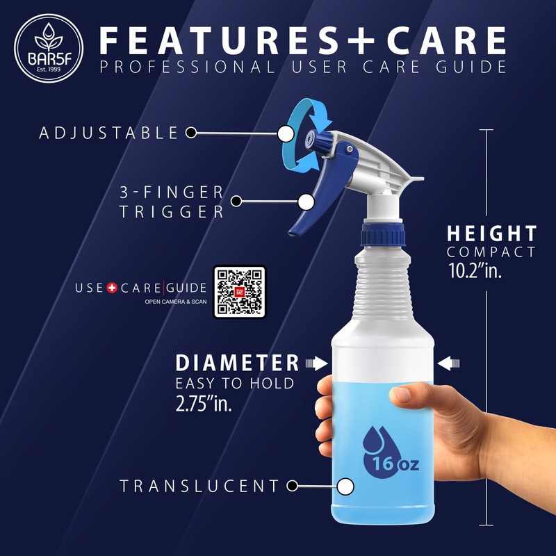 - Multipurpose Use: Our 16oz plastic spray bottles serve a variety of purposes, from a squirt bottle for plants, a spray water bottle for cleaning, to a detailing spray bottle for autos.