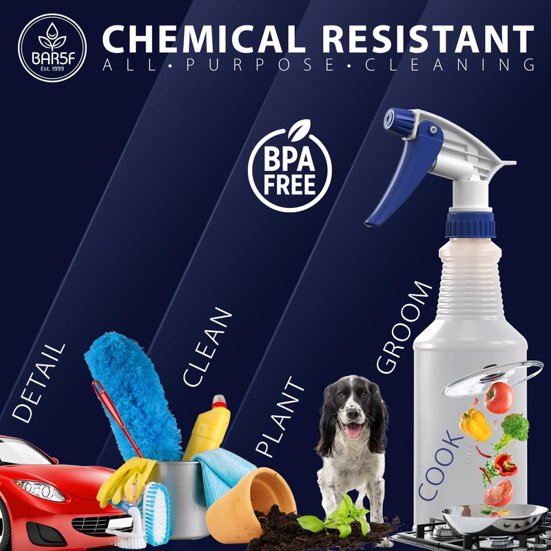 - Multipurpose Plastic Spray Bottles: Perfect as cleaning spray bottles or for gardening, auto detailing, and many more. Safe for vinegar, alcohol, and other chemicals. A versatile solution for your everyday needs.