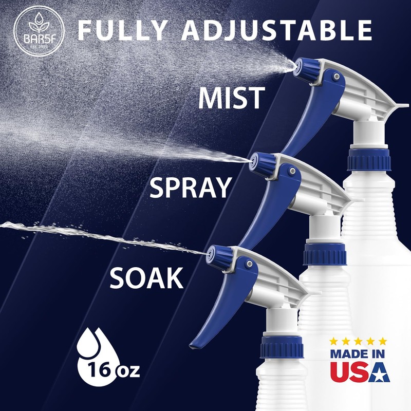 Spray Bottle 16 Ounce 4-Pack - Heavy-Duty, BPA-Free Plastic Spray Bottles for Cleaning, Gardening, Auto Detailing - Leak-Proof, Adjustable Nozzle Mist or Soak, Chemical Resistant, Made in USA