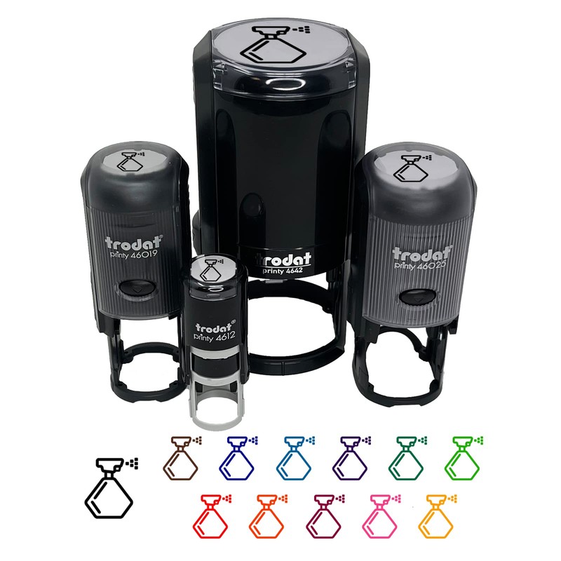 The stamp includes its own ink pad in the color listed for an all-in-one solution. The design is located on top of the stamp for easy identification.