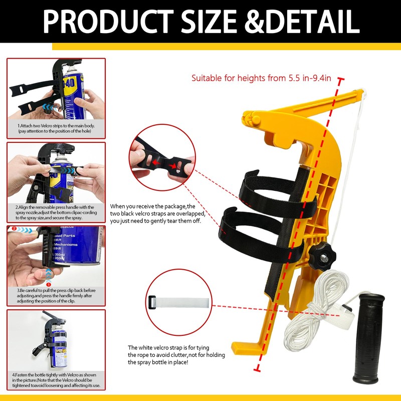 - 【Perfect Design】 Equipped with a top-down button trigger, this wasp spray extension pole adapter stabilizes aerosol cans, making them secure and easy to use. This spray can holder is versatile enough to be attached to and triggered by nearly any type of spray can, as well as some dusters and other spray bottles.