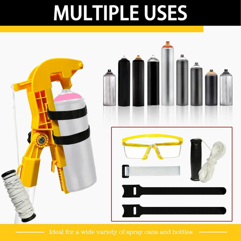 - 【Adjustable Bottom Bracket】 The spray paint extension pole adapter features an adjustable bottom bracket and Velcro straps to prevent the spray bottle from falling and ensure user safety.