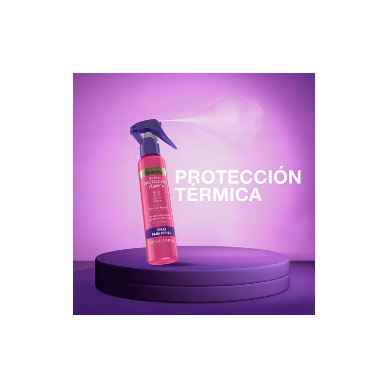 El Spray Keratina y Arginina de Biometík reduce el daño por el calor hasta 220° C, facilita el planchado y protege la fibra capilar al mismo tiempo que mantiene el color de tu cabello, gracias a su activo anti-pollution.