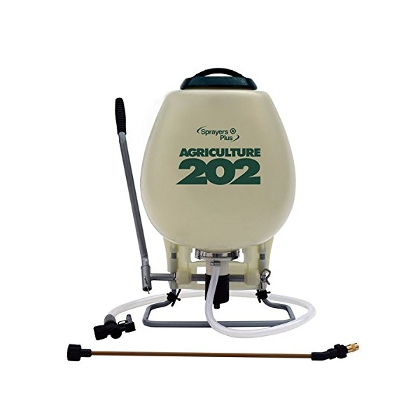 The all new 202 features the "new look" 4 Gallon high density polyethylene tank with UV protection. The 202 has many features not available on competitive units such as the unique new Sprayers Plus repairable piston pump module. This pump is capable of generating 120 psi and has a recommended working pressure ranging from 15 to 80 psi. To add user comfort Sprayers Plus has improved the deluxe shoulder straps and pads.