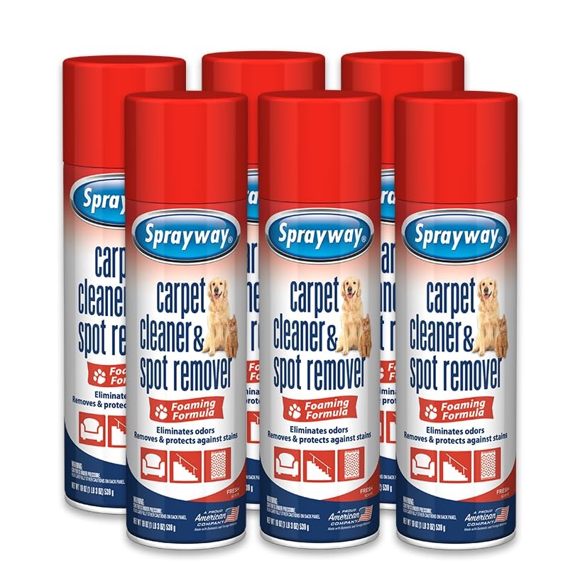 Sprayway Carpet Cleaner (Pet), 19oz, Pack of 6 | Removes Pet Stains & Odors, Foaming Action | Deep Cleans Carpets & Upholstery | Fresh Scent, Quick-Drying Formula