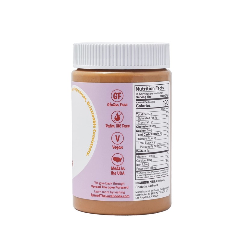 Spread The Love Basic Cashew Butter, 16 Ounce (All Natural, Vegan, Gluten-free, Creamy, No added salt, No added sugar, No palm fruit oil, Not pasteurized with PPO) (6-Pack)