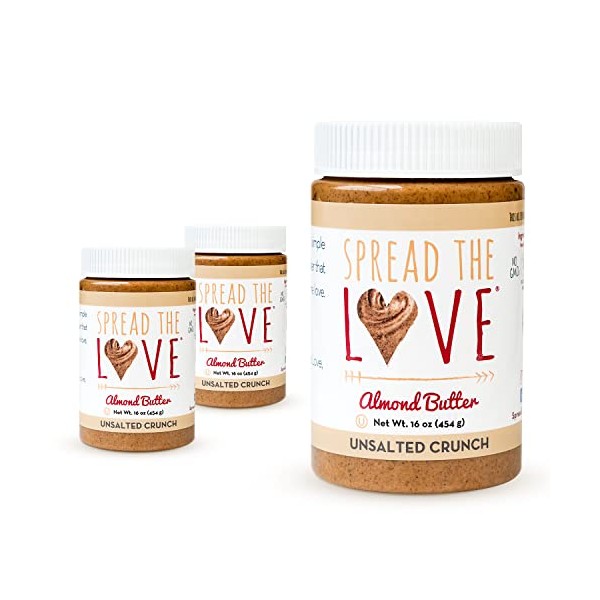 Spread The Love UNSALTED CRUNCH Almond Butter, All Natural, Vegan, Gluten Free, Creamy, No Added Salt or Sugar, No Palm Fruit Oil, Not Pasteurized with PPO, Made in California (3-Pack)