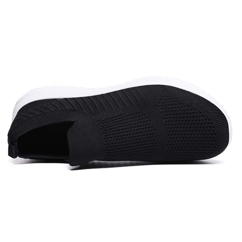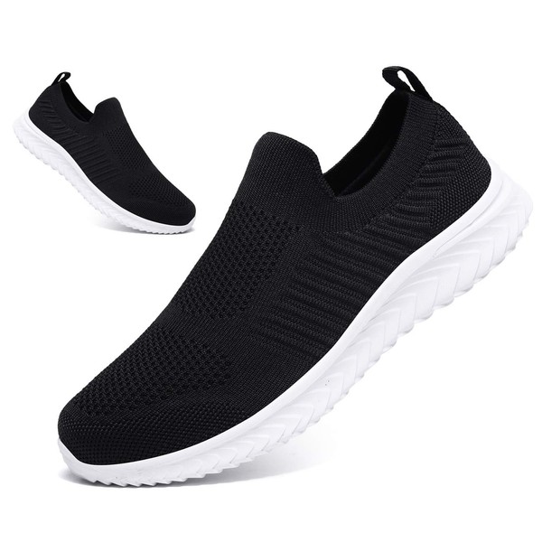 SPRGREEN Mens Laceless Slip - on Mesh Knit Sneakers for Casual Athletic Walking & Running - Lightweight, Comfortable, Breathable, Black White, 11