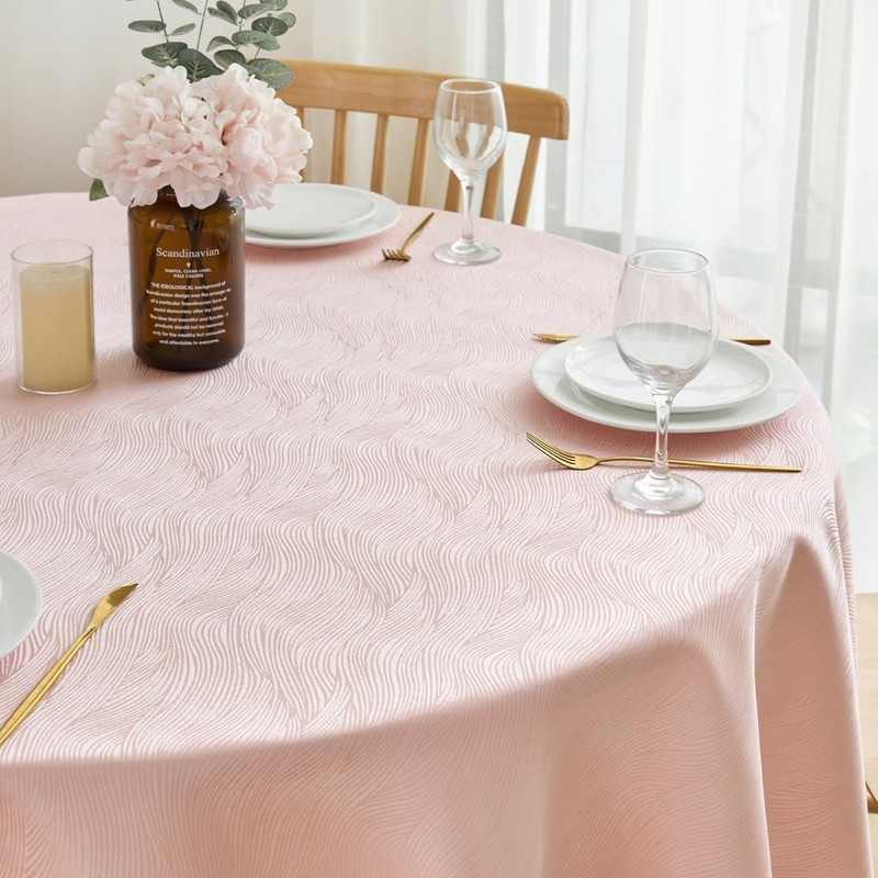 SPRICA Round Jacquard Tablecloth 200cm Water Resistant Solid Colour Heavy Weight Soft Table Cover, Machine Washable, Round 200cm, Powder Pink