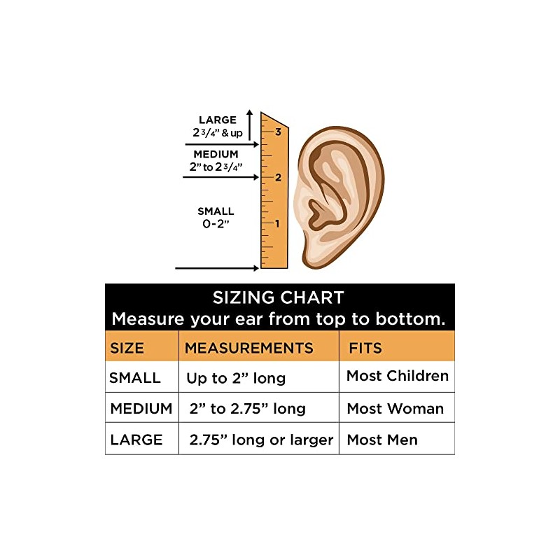 - EARBAG SIZING- Earbags are available in three sizes. Sizing is important to make sure that Earbags fit comfortably and stay on securely. 80% of adults fit in Medium and Large sizes. Most children need a Small. Please follow the sizing chart and get an accurate sizing of your ear: Small: under 2 inches, Medium: 2 inches -2.75 inches, Large: over 2.75 inches