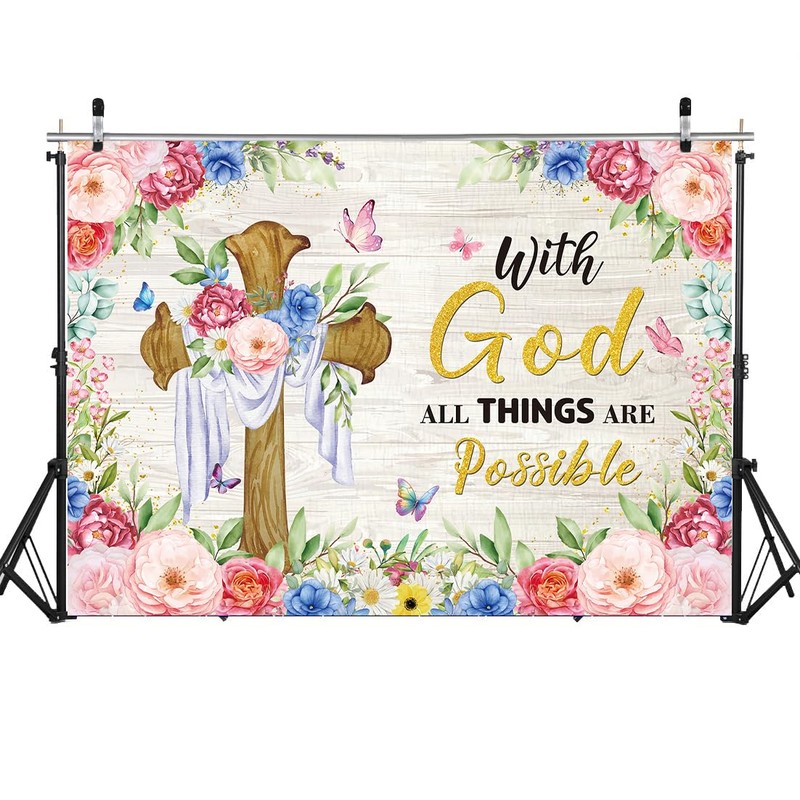 Spring Banner Decorations Spring Easter Photography Backdrop 8x6FT Butterfly Flowers Jesus Cross Background for Christian Holiday Photo Props