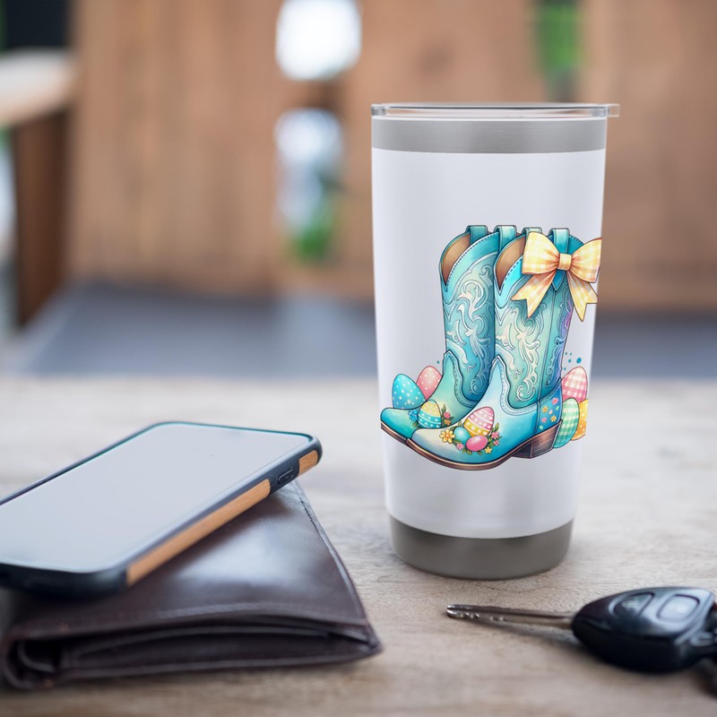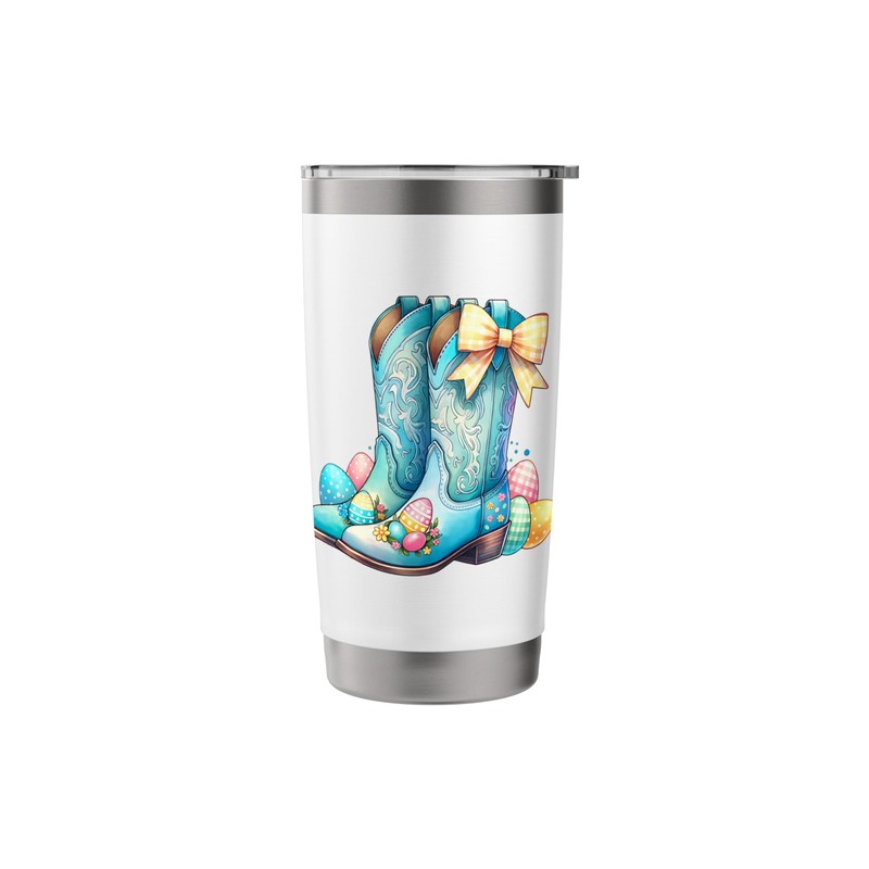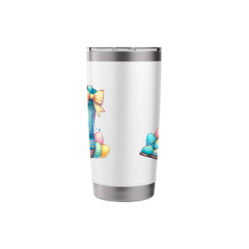 Spring Coquette Cowgirl Boots and Bow with Easter Eggs Stainless Steel Insulated Tumbler