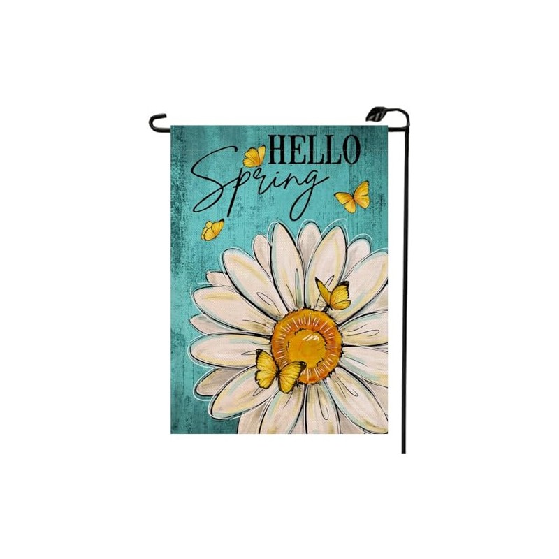 Spring Daisy Garden Flag 12x18 Inch Double Sided Hello Spring Floral Butterfly Yard Outdoor Burlap Outside Decoration Flag CJ19