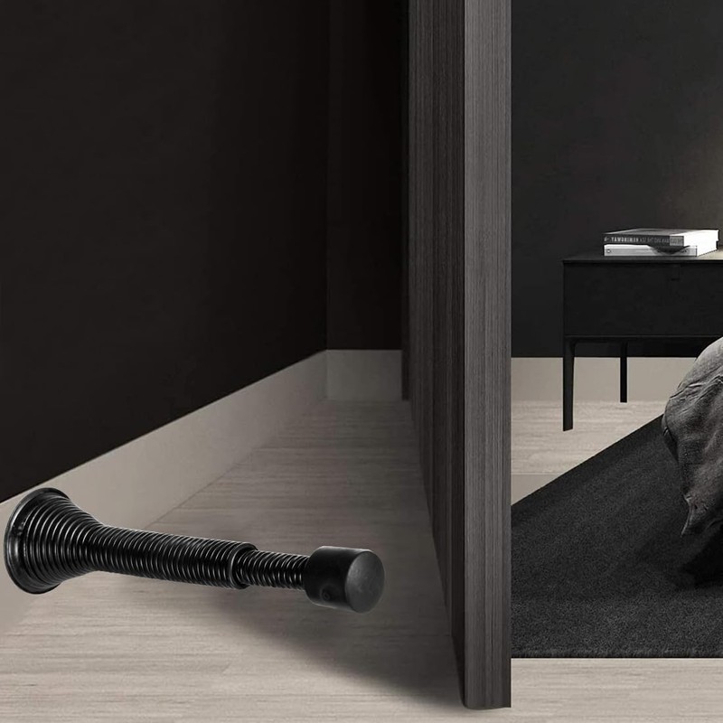 - Solid Metal: Spring door stop is made of alloy steel with black coating, with strong flexibility, rust resistance, strong and long lasting.
