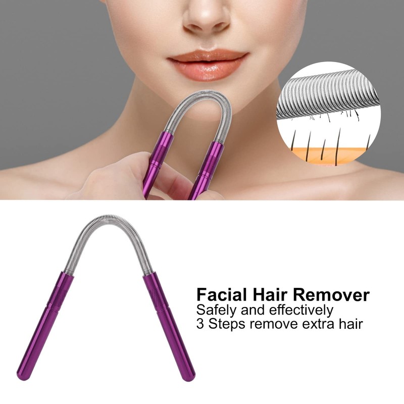 Spring Facial Hair Remover Women, Stainless Steel Portable Epilator Handheld Face Roller Threading Tool Manual Epilator for Removing Roots Lip Chin Forehead Fluff (Purple)