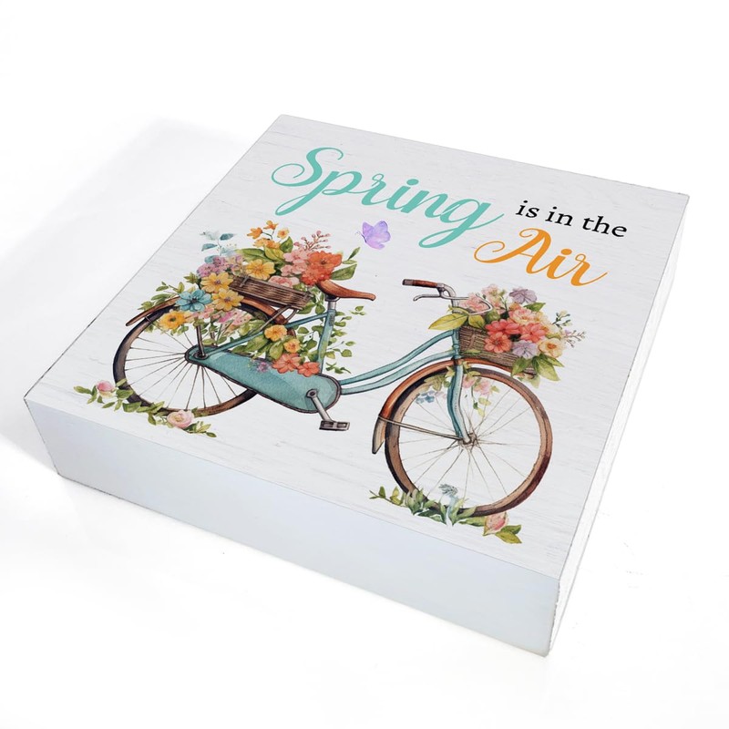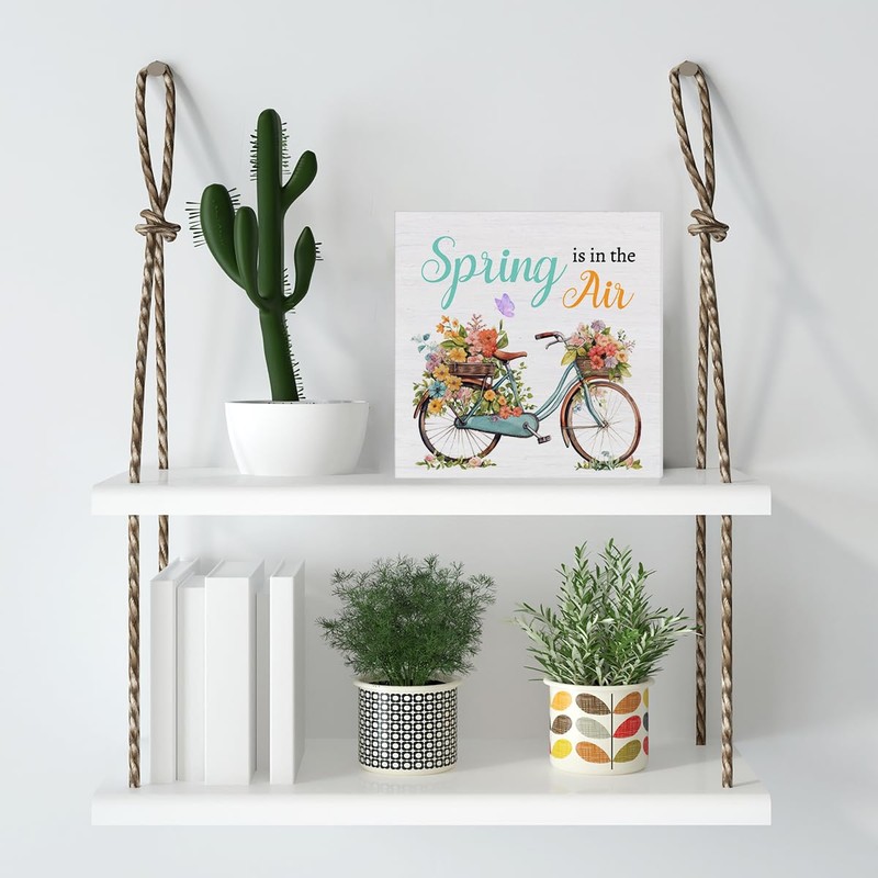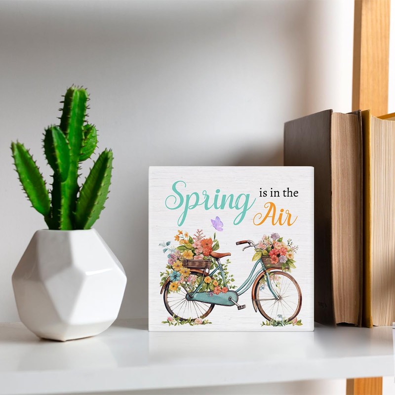 Spring Home Decor Spring Decorations Spring Is in the Air Wooden Sign Decor for Desk Table Shelf Wall 5 x 5 Inches