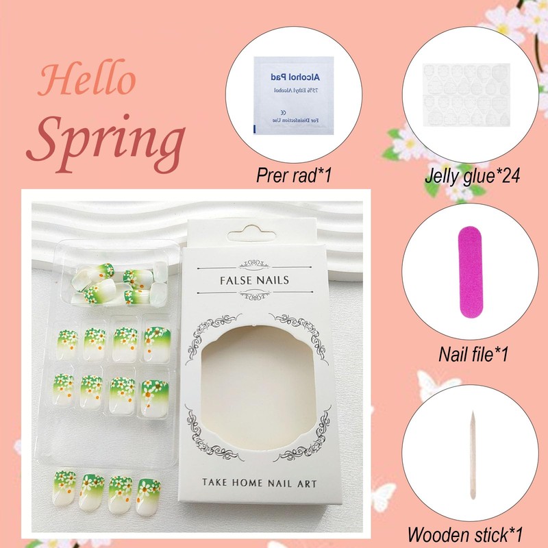 - Widely use:Spring element acrylic artificial nails,you can change your nail style anytime and anywhere,our false nails are suitable for dating,parties,etc.Short square nails are also a perfect gift for your partner,family and friends.