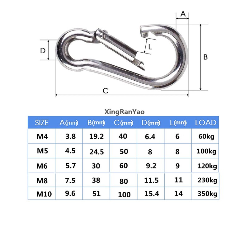 M10: Length: 3.9 inches (10 cm), 4.2 oz (120 g), Load Capacity: 66.3 lbs (350 kg), 2 pieces/set