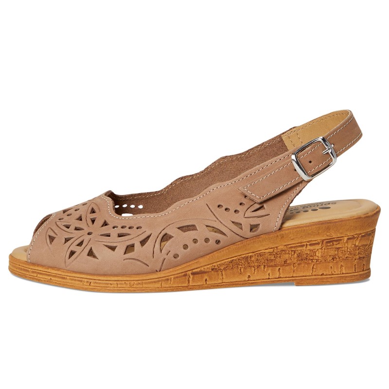 - Indulge in the lasting comfort and style with the Spring Step Orella slingback wedge. The wedge sandal has a premium leather upper with an intricate laser-cut design throughout for added style and feminine appeal.