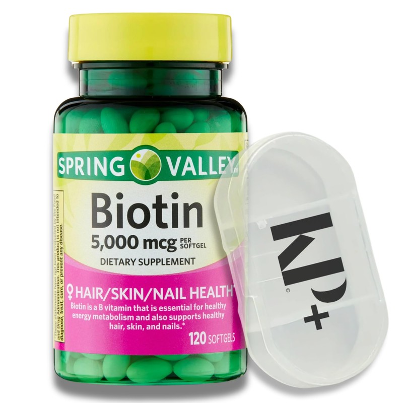 Spring Valley Biotin, Biotin 5000 mcg, Biotin Softgels, 120 Count Bundle with Pill case