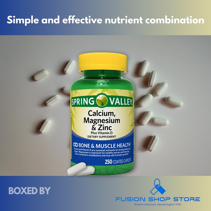 Spring Valley Calcium Magnesium Zinc- Plus Vitamin D3 Coated, 250 caplets(Pack of 1), Boxed by Fusion Shop Store