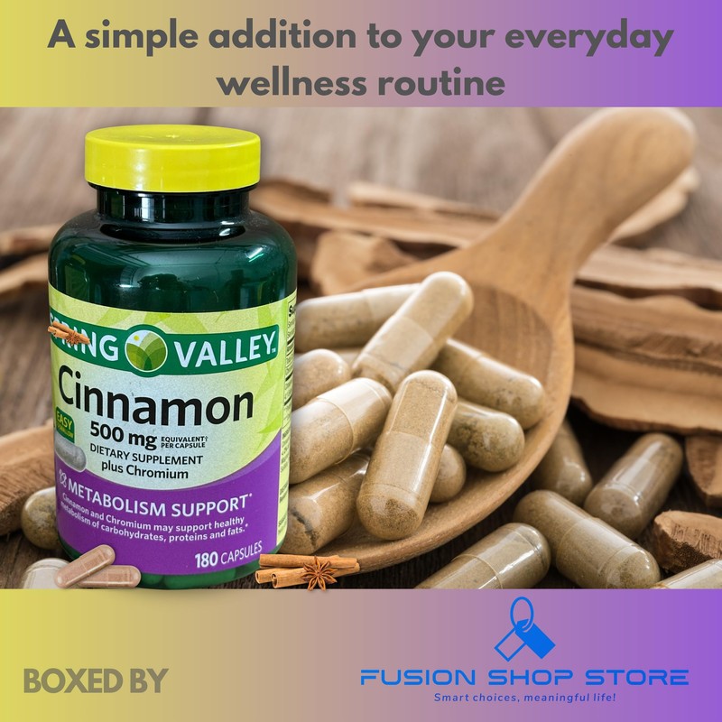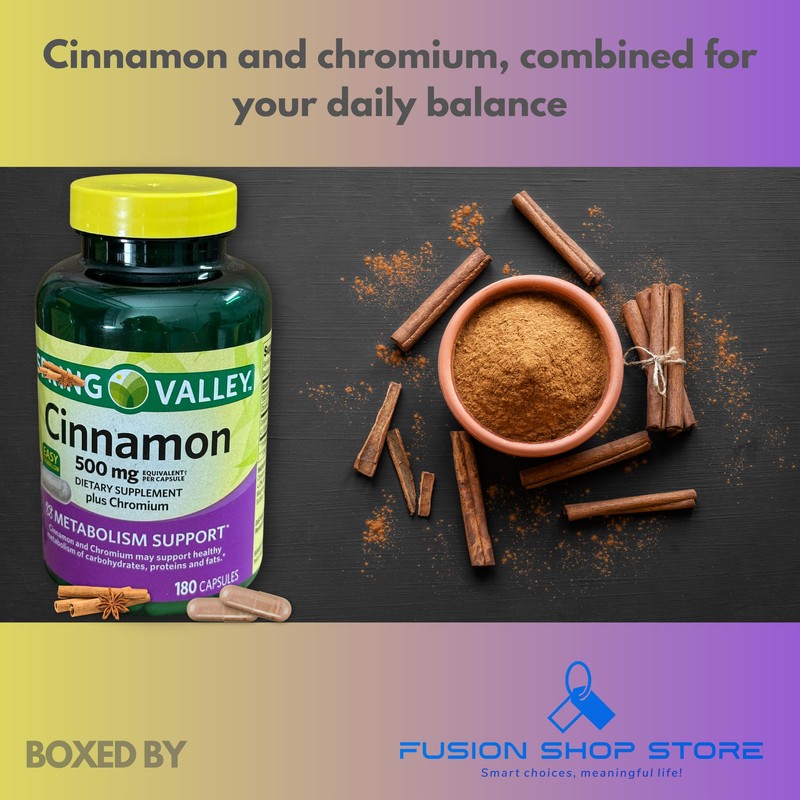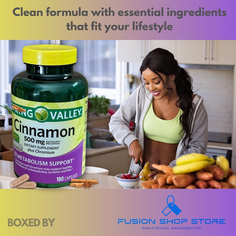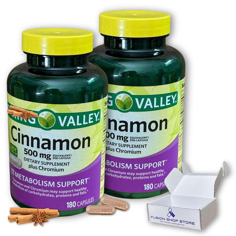 Spring Valley Cinnamon Capsules- 500mg Plus Chromium 180ct (Pack of 2), Boxed by Fusion Shop Store