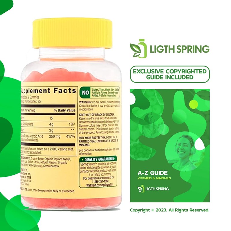 Spring Valley Vitamin C Gummies, 250 mg, 70 Count + “Vitamins & Minerals - A to Z - Better Light&Spring Guide” (1 Pack 70 Count)