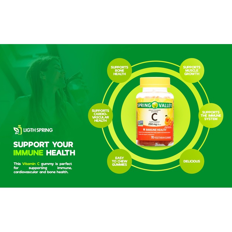 - Spring Valley Vegetarian Vitamin C Gummies for Adults, 250 mg, 70 Count provide a delicious and convenient way to get your daily dose of Vitamin C.