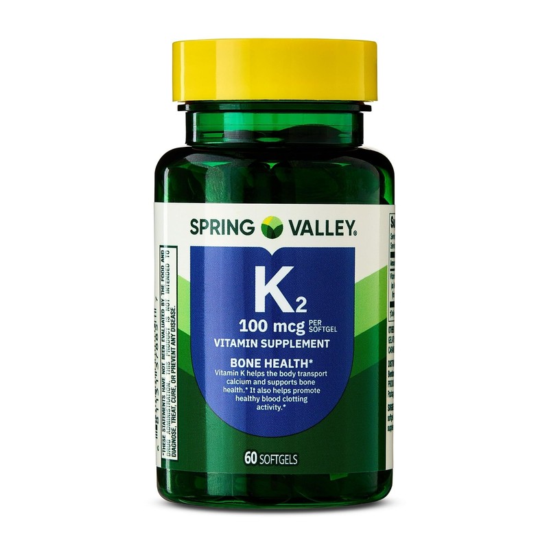 Spring Valley Vitamin K2 100mcg- 60 softgels (Pack of 1), Set by Basket Goods