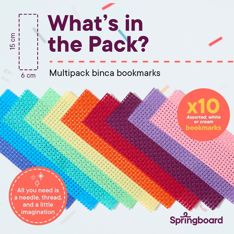 - GET CRAFTING: This pack of sewing fabric includes 10 pre-cut, natural binca bookmarks. These crafting supplies are perfect for teaching children the basics of sewing, weaving, embroidery, and stitching.