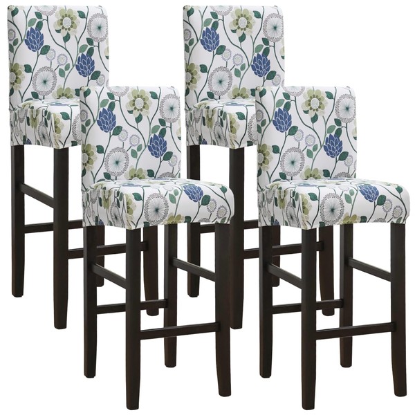 SPRINGRICO Bar Stool Covers Set of 4, Stretch Washable Barstool Seat Covers with Backs, Removable Counter Height Chair Covers for Kitchen Dining Room Cafe (Floral3, 4PCS)